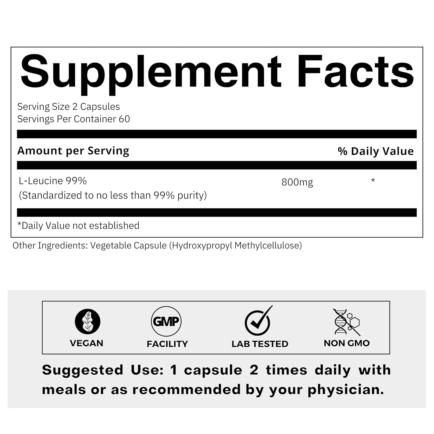 ๐ FOLIUS LABS Clean Label L Leucine Supplement - Amino Acid Supplement - 120 Veg Capsules