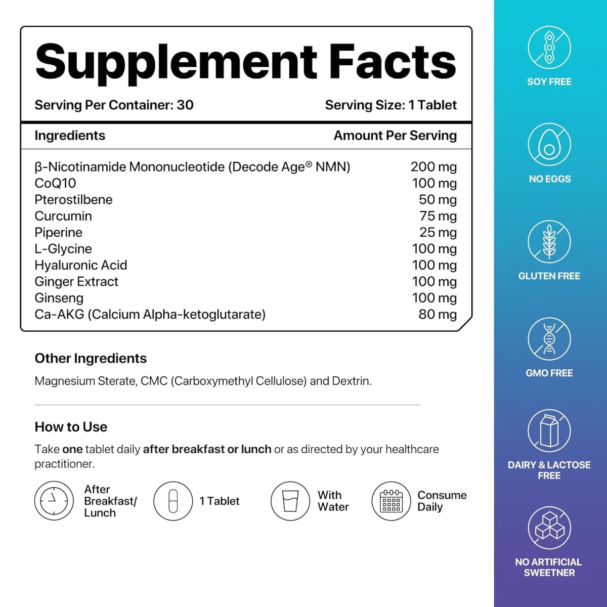 - ?-Nicotinamide Mononucleotide (Decode Ageยฎ NMN): 200 mg